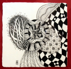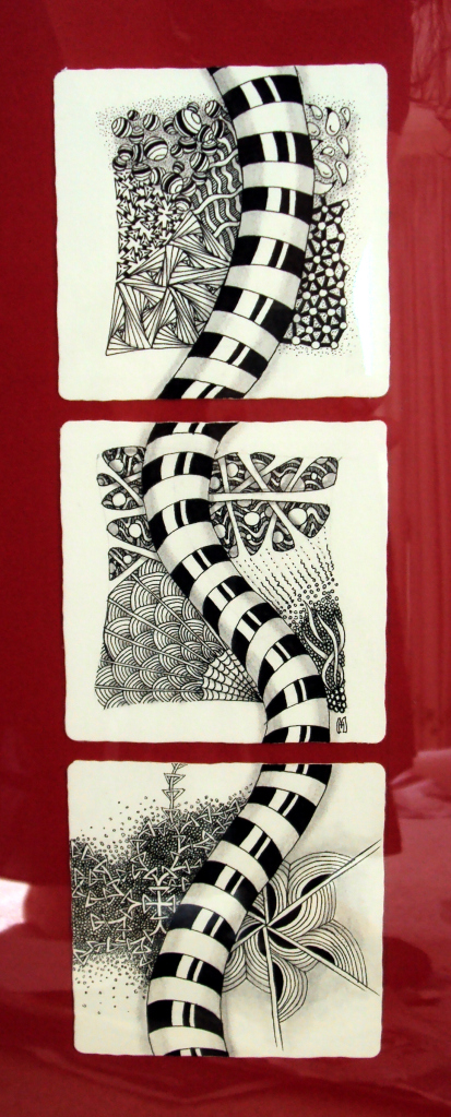 This exclusive exhibition of fine art is for only 8 artists, giving them the opportunity to show their unique works. Megan has used a drawing style for these two drawing called the Zentangle drawing method. For more information about this style see the link www.zentangle.com